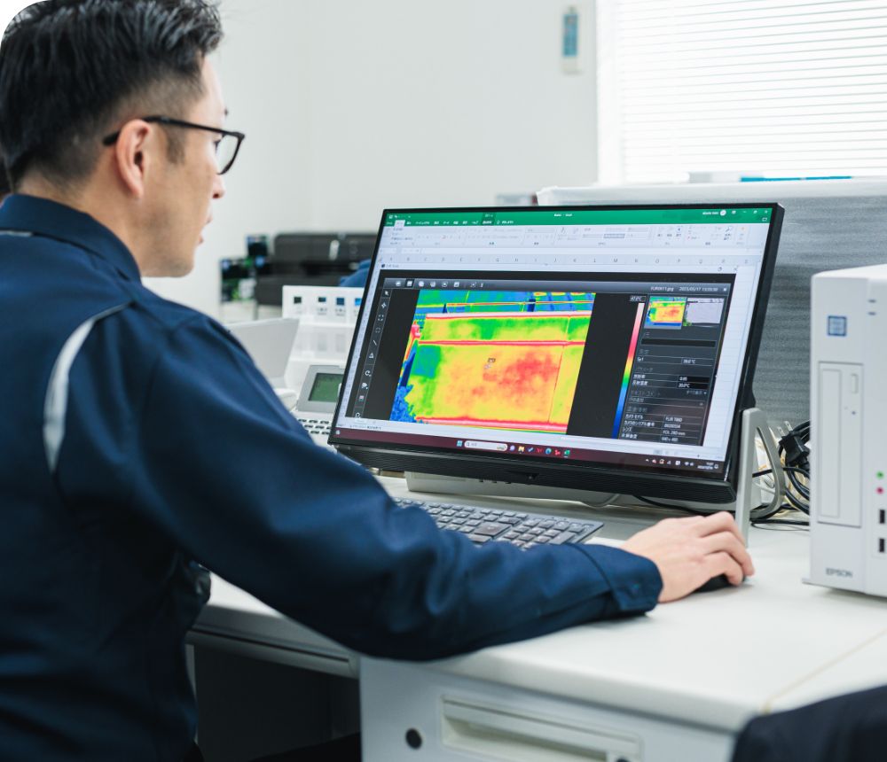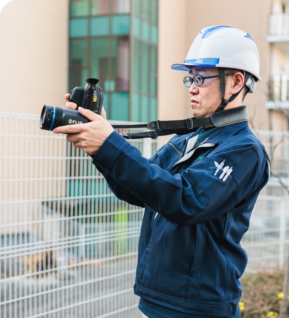 赤外線外壁調査は、打診調査と比較して費用や期間、調査精度など、あらゆる面でメリットが多く、サーモでは赤外線建物診断技能師の資格を持った技術者による外壁調査を実施しています。